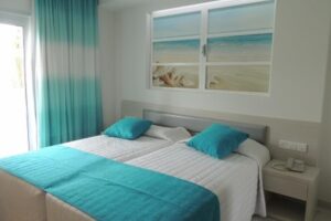 Hotel nabízí ubytování v 70 komfortně zařízených pokojích. Každý pokoj má vlastní sociální zařízení, klimatizaci, vysoušeč vlasů, televizor se satelitními programy a balkon nebo terasu s výhledem na moře, zahradu nebo bazén.