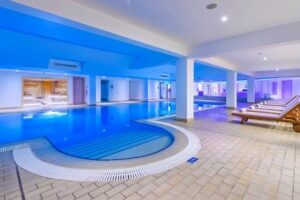Vybavení hotelu zahrnuje prostornou vstupní halu, hlavní restauraci, bary, konferenční místnost, bazény, dětské zařízení, fitness centrum, sauna, jacuzzi a další relaxační a sportovní vybavení. Ubytování v elegantně zařízených dvoulůžkových pokojích s balkonem nebo terasou zajišťuje pohodlí a soukromí, ať už si hosté vyberou pokoj s výhledem na moře nebo na letovisko.
