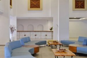 Hotelový komplex disponuje moderní vstupní halou s recepcí otevřenou 24 hodin denně, což zajišťuje maximální dostupnost pro hosty. K dispozici jsou také bar, restaurace a venkovní bazén s lehátky a slunečníky zdarma pro pohodlné relaxování a slunění.