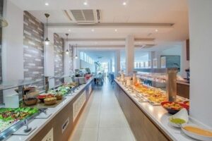 Stravování je formou polopenze, která zahrnuje snídaně a večeře podávané formou bufetu. Hosté si mohou za poplatek dokoupit All inclusive program, který zahrnuje servírované obědy, lehké občerstvení během dne a místní nealkoholické a alkoholické nápoje. Tato nabídka zajišťuje pohodlí a široký výběr jídel a nápojů po celý den.