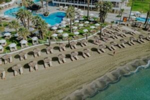 Golden Bay Beach je elegantní hotelový resort přímo na pěkné dlouhé písčité pláži poblíž plážové promenády s mnoha obchůdky a restauracemi. Nachází se 8 km od známého letoviska Larnaca, s pohodlnou dostupností místní dopravou a 20 minut jízdy z mezinárodního letiště Larnaca.