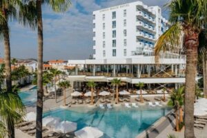 Tento sedmipodlažní hotel je obklopen krásnou zahradou a disponuje 180 klimatizovanými pokoji, které jsou stylově zařízeny a vybaveny vlastní koupelnou s vanou a WC, vysoušečem vlasů, SAT/TV a balkonem nebo terasou. Minibar, trezor a internetové připojení jsou k dispozici za poplatek. Pokoje s výhledem na moře a rodinné pokoje s možností dvou přistýlek jsou na vyžádání a za příplatek.