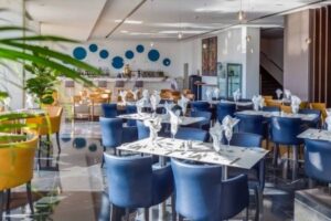 Hotel nabízí 151 pokojů a apartmánů rozmístěných v moderní sedmipatrové budově s výhledem na moře a letovisko. Hosté mohou využívat prostornou vstupní halu s recepcí, hlavní restauraci, stylovou à la carte restauraci, lobby bar, mini market a internetový koutek. V hotelu je k dispozici také fitness centrum, masážní salón, sauna, vířivka, kadeřnictví a venkovní bazén s dětskou částí. Opalovací terasa s lehátky a slunečníky je ideální pro relaxaci, zatímco parkoviště zajišťuje pohodlné parkování.