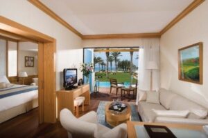 Ubytování je poskytováno ve více než 200 komfortně zařízených pokojích s klimatizací. Každý pokoj má vlastní sociální zařízení, televizor se satelitními programy a minibar (za poplatek). Balkony nabízejí výhled na záliv Paphian Bay nebo do udržované zahrady, přičemž pokoje s výhledem na moře jsou dostupné za příplatek.