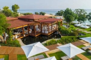 Hotelový komplex nabízí 225 elegantních pokojů rozmístěných ve čtyřpatrové hlavní budově a několika moderních depandancích s nádherným výhledem na pobřeží. K vybavení hotelu patří prostorná vstupní hala s recepcí, směnárnou a lobby barem, hlavní restaurace a a la carte restaurace Pavilon, konferenční místnost, minimarket, kosmetický salón, internetový koutek, WiFi připojení v lobby zdarma, společenská místnost se satelitní TV, herna, prádelna, úschovna zavazadel, půjčovna automobilů, fitness centrum, moderní wellness centrum, dva velké venkovní bazény, dětský bazén, snack bar u bazénu, opalovací terasa, dětské hřiště, mini klub a sportoviště.