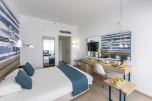 Ubytování je nabízeno ve dvoulůžkových pokojích, které jsou vybaveny vlastním sociálním zařízením, centrální klimatizací, minibarem, lednicí (za poplatek), satelitní televizí, telefonem a trezorem (za poplatek). Většina pokojů má také balkon. Hotel poskytuje i rodinné pokoje, které jsou prostornější a mají palandu pro děti.