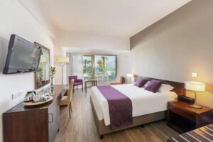 Ubytování je nabízeno ve dvoulůžkových pokojích, které jsou vybaveny vlastním sociálním zařízením, centrální klimatizací, minibarem, lednicí (za poplatek), satelitní televizí, telefonem a trezorem (za poplatek). Většina pokojů má také balkon. Hotel poskytuje i rodinné pokoje, které jsou prostornější a mají palandu pro děti.