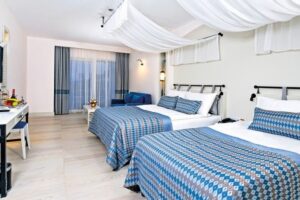 Ubytování v Limak Cyprus Deluxe Hotel zahrnuje standardní dvoulůžkové pokoje s možností jedné přistýlky, vybavené koupelnou se sprchou, fénem, centrální klimatizací, plasma TV, trezorem, minibarem a vysokorychlostním Wi-Fi. Pro rodiny nebo větší skupiny jsou k dispozici prostorné rodinné pokoje se dvěma ložnicemi. Pokoje jsou moderní a pohodlné, ideální pro relaxaci po dni stráveném na pláži nebo objevování okolí.
