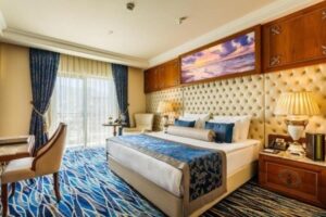Hotel Lord’s Palace se nachází v těsné blízkosti nového přístavu v Kyrenii a jen pár minut chůze od centra města s nákupními možnostmi. Letiště Ercan je vzdáleno přibližně 38 km, což činí transfer asi 45 minut. Hotel je stylizován v anglickém duchu, což dodává jeho interiérům elegantní a klasický vzhled. Kyrenia, ležící na severním pobřeží Kypru v turecké části ostrova, je městem s bohatou historií a malebným okolím.